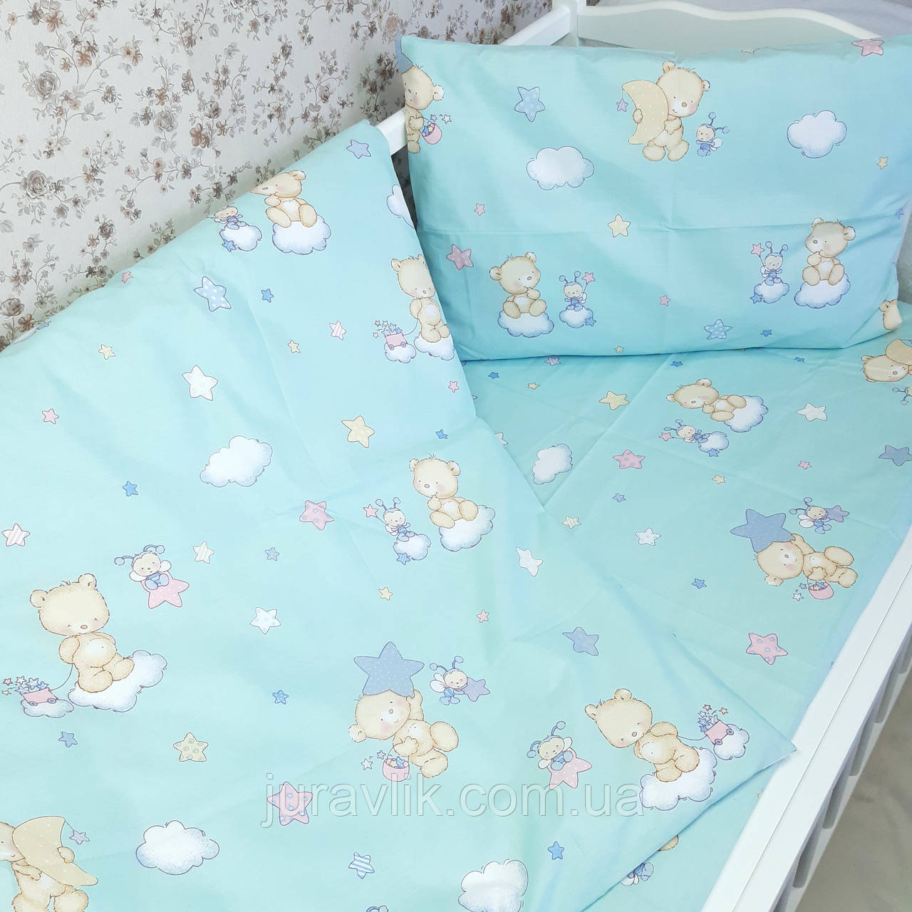 Дитяча постіль для новонароджених хлопчику Блакитна Постільна білизна для хлопчика в ліжечко дитяче підковдра 90*120 простирадло наволочка